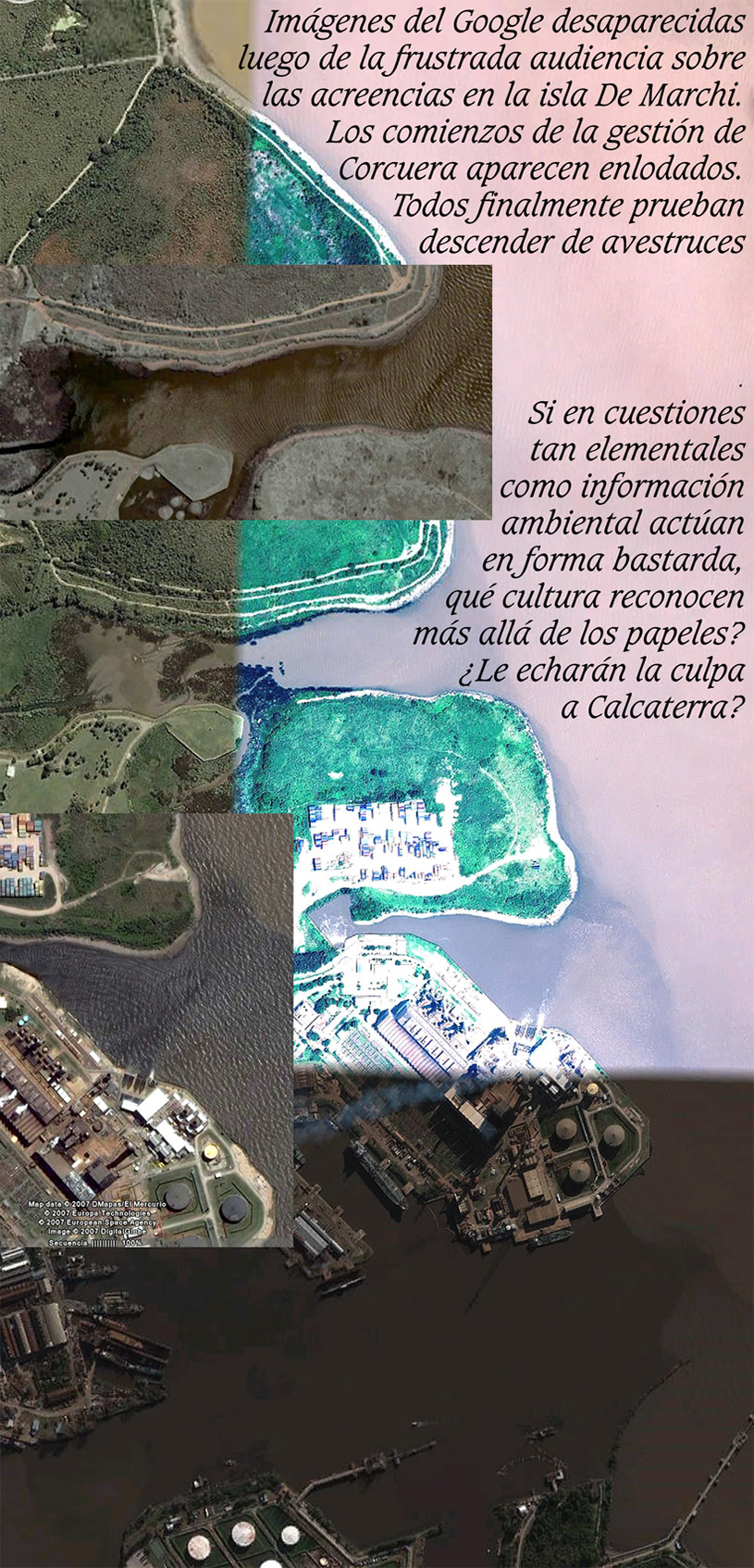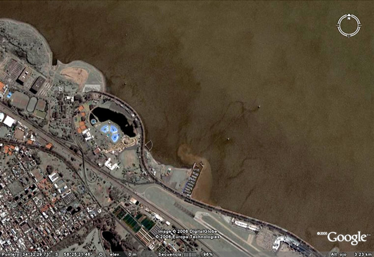 Otro fenómeno para considerar en su justa medida: el trascendido de nuestro compatriota CEO de Shell, que con razón lamenta la inseguridad jurídica que vive el país y su empresa en especial amenazada con controles de precios, estando seguramente enterado cómo se generan estas otras plumas, no precisamente de pingüinos, que tanta seguridad regalan como compensación ejemplar a los valores que a su empresa niegan. Aquel par de imágenes superiores mostrando las plumas de hidrocarburos metiéndose directamente en las tomas de agua de Palermo, fueron recogidas luego de un seguimiento secuenciado de 14,6 Kms que nacía de estas bocas tan respetuosas del sentido común y del más complejo orden jurídico, para subir merced a la deriva litoral hasta las cercanías de las bocas de Palermo donde mutaban a convexión externa y se colaban directamente en las tomas como por obra de una aspiradora. Al menos son más sinceras que las del emisario oculto que desde hace aprox 45 años trae estas mismas pestes desde Campana y a través de no menos de media docena de bocas difusoras siembra terror que deja estelas visibles hasta 45 Km de sus salidas. Vale entonces estimar cuántos Exxon Valdés salieron por allí en 45 años, para mirar el fiel de esta inseguridad jurídica. Ver http://www.alestuariodelplata.com.ar/costa0.html