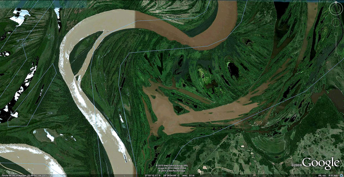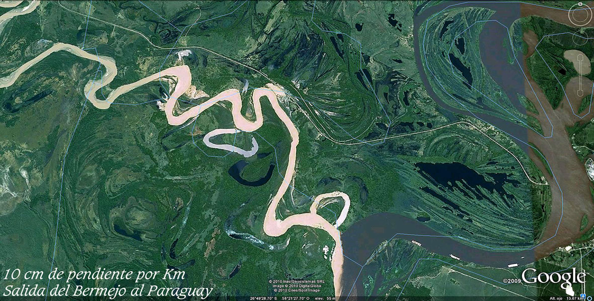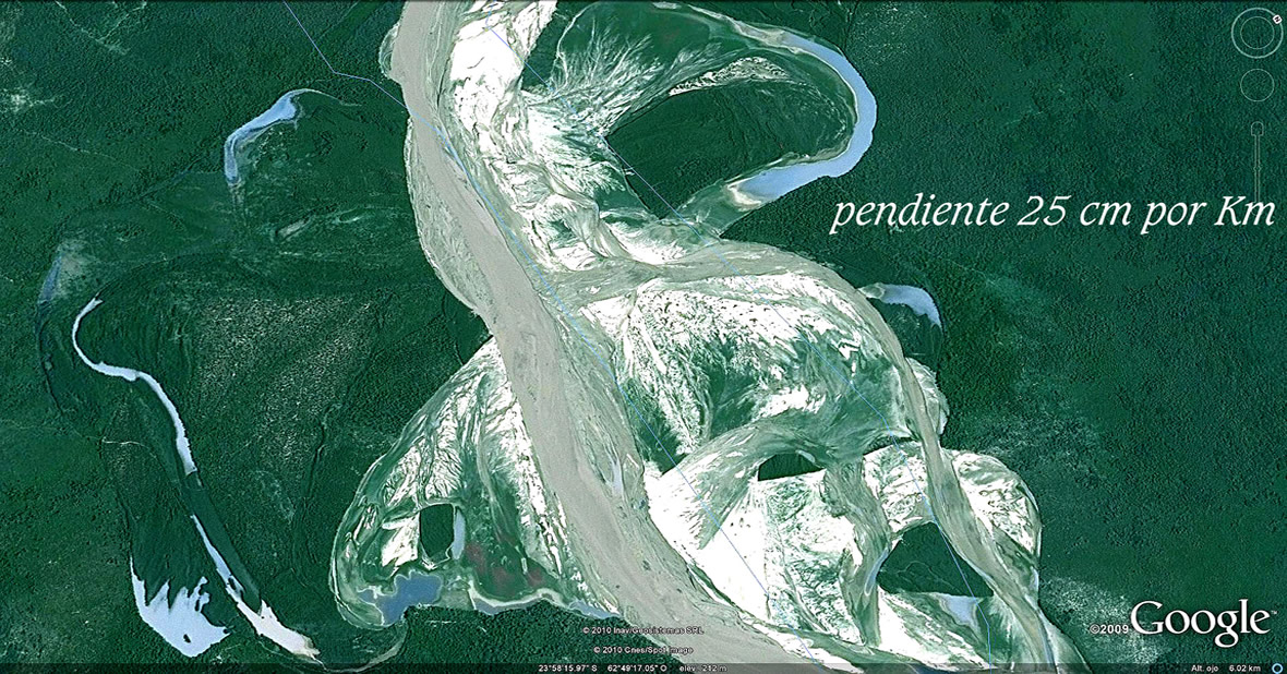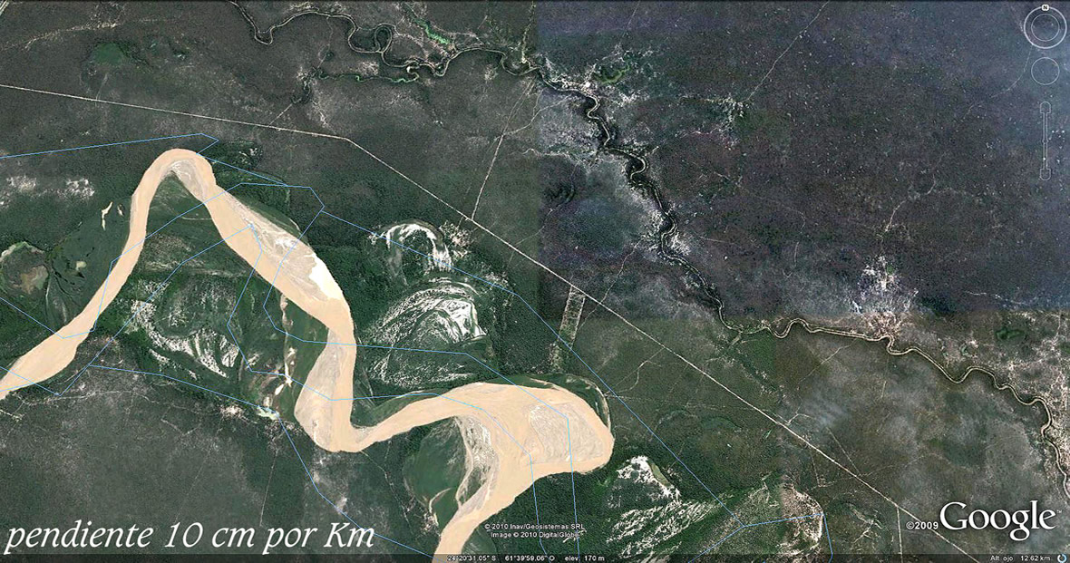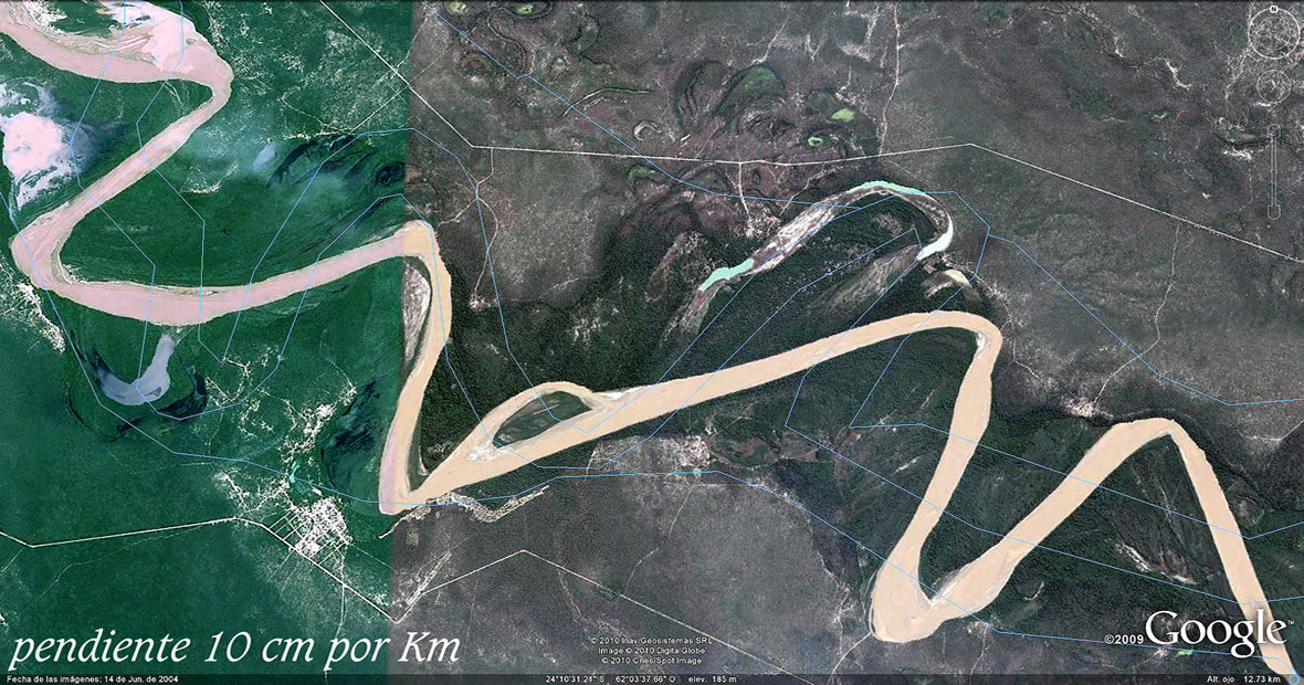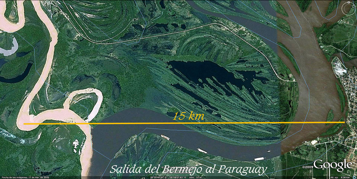 El comentarista de la NASA imagina estos cambios en tiempos centenarios. Pero las huellas que regala el Bermejo en sus suelos de texturas sueltas y altísima variedad de caudales, desde los moribundos a los atropellantes, luciendo a pleno sus permanentes transformaciones en las imágenes que siguen, hablan de tiempo recientes y de la extraordinaria energía presente, catapultante primero de sus salidas al río Paraguay y luego, de los estruendos al abrirse al Paso de la Patria.