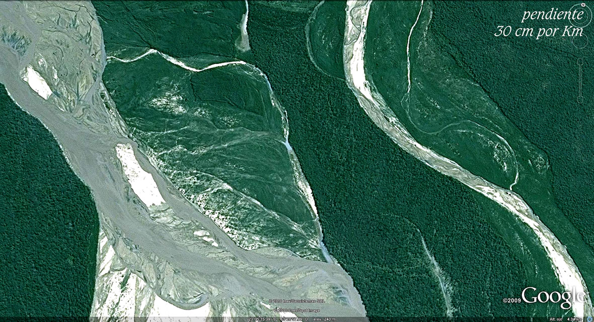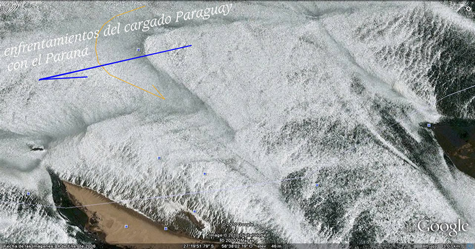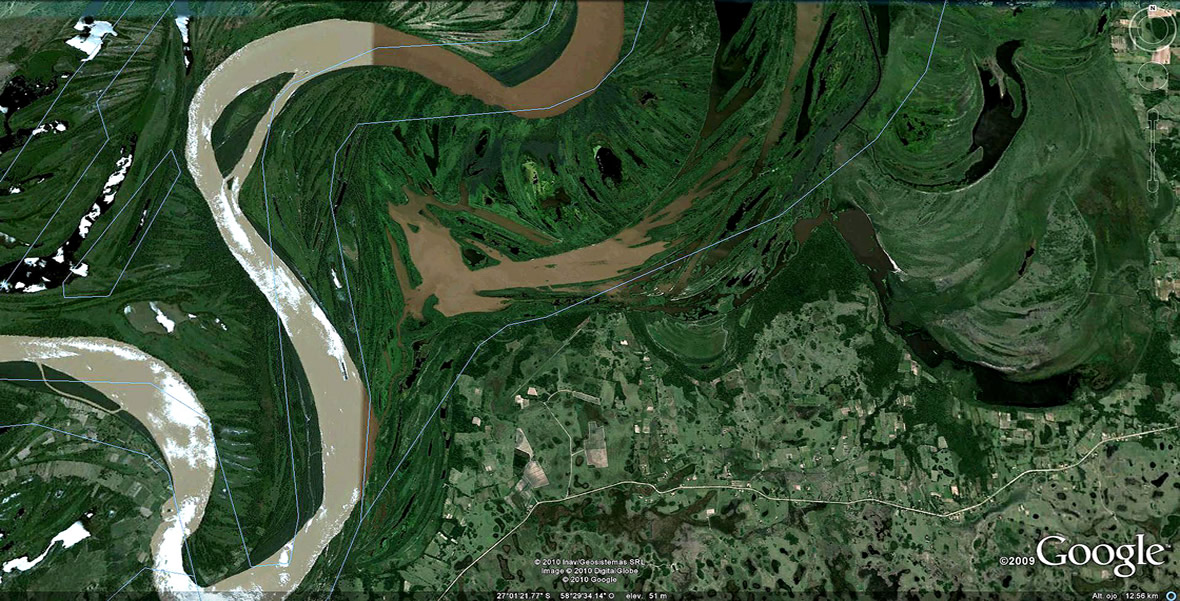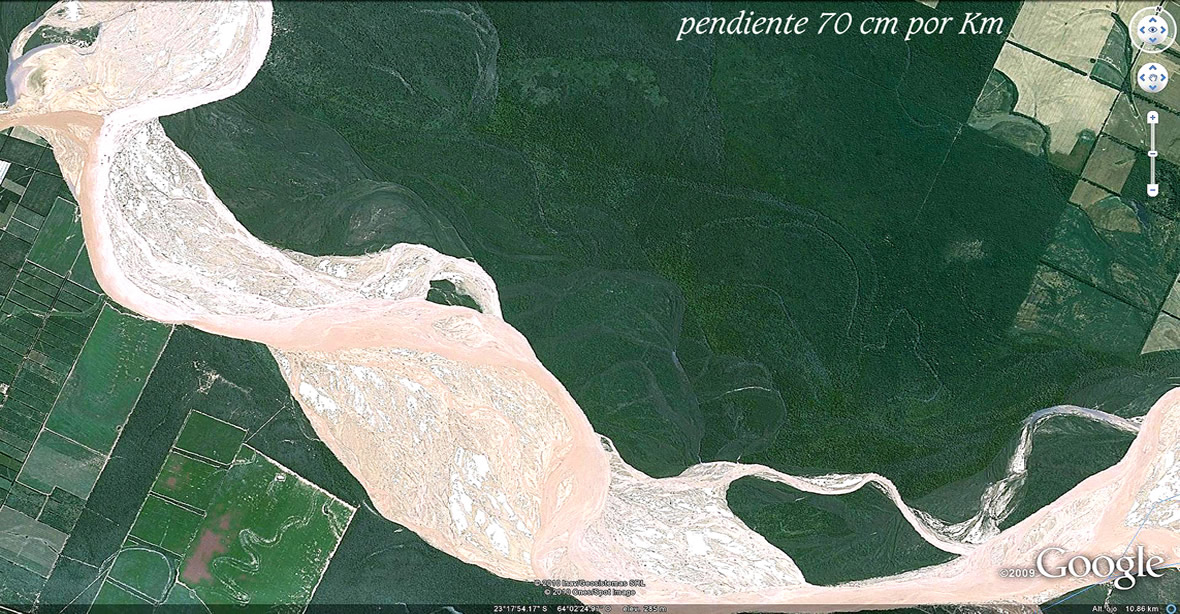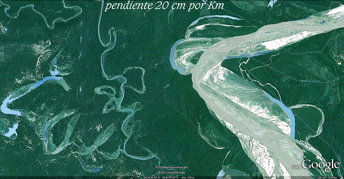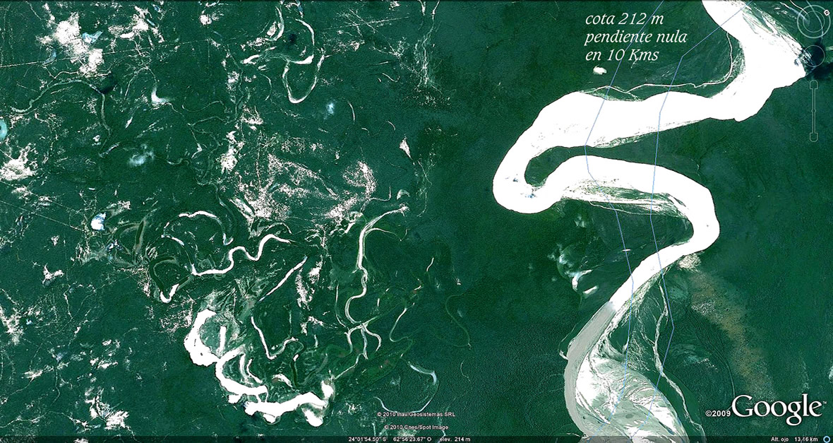 El comentarista de la NASA imagina estos cambios en tiempos centenarios. Pero las huellas que regala el Bermejo en sus suelos de texturas sueltas y altísima variedad de caudales, desde los moribundos a los atropellantes, luciendo a pleno sus permanentes transformaciones en las imágenes que siguen, hablan de tiempo recientes y de la extraordinaria energía presente, catapultante primero de sus salidas al río Paraguay y luego, de los estruendos al abrirse al Paso de la Patria.