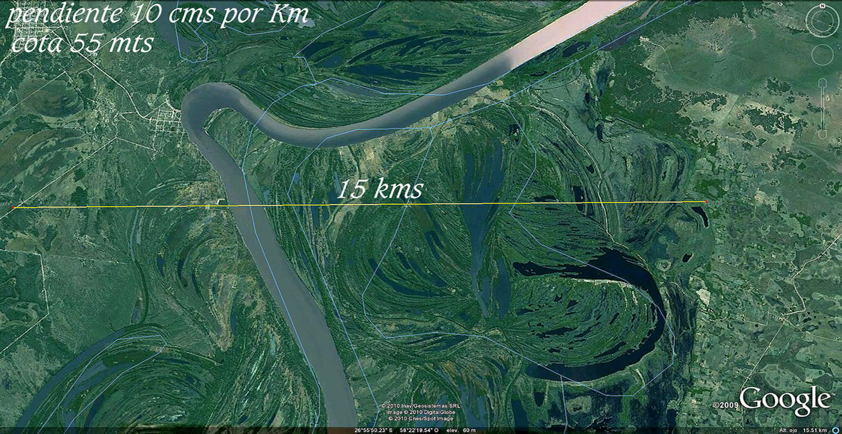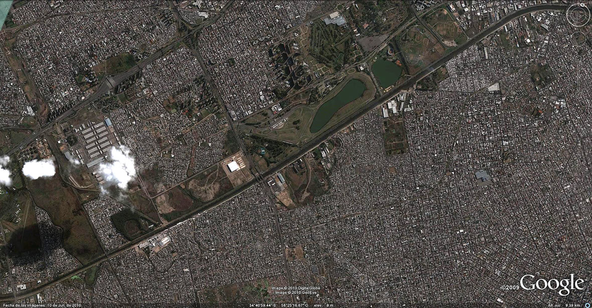 Esto habla a las claras de la fragilidad de la planicie del Luján, al menos en esta porción que media entre el ex FFCC Belgrano y el San Martín que le sigue. El estudio del INA sobre esta cuenca acredita en este puente un embalsamiento de 2,86 m en la recurrencia de 100 años. Ver + x /sebastian26.html Sin embargo, veamos cómo se las arregla el curso de agua para juntar las energías que le mueven a salida. Este puente tiene 33 mts de luz y el único cursito que se descubre activo no supera los 2 m de ancho. La imagen fue capturada a 500 m de altura y bastante afortunado considero este regalo, que ninguno de los nombrados en la primera fotografía alcanzaron desde el suelo a percibir; a pesar de haber declarado el Juez Kohan que estábamos en presencia de algo tan frágil, como descomunal. ¡Qué pena que no cultivó esa intuición!