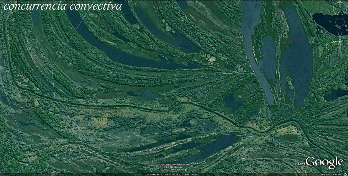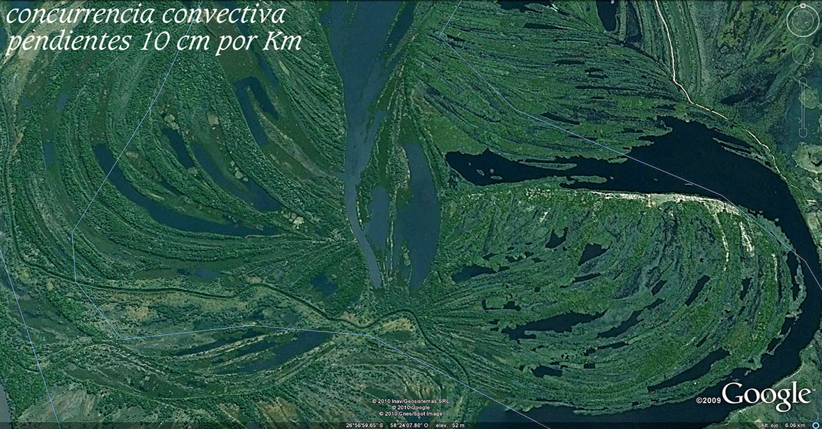 Encuentro con las sutiles energías que mueven las aguas en planicies extremas Lejos de pertenecer a los segmentos de flujos laminares modelizables en los laboratorios de mecánica de fluidos, estas energías se aplican en forma natural, sin gastos en entropías negativas, a conformar los despegues de flujos convectivos internos naturales positivos. Flujos mentados en mecánica de fluidos como "verticales turbulentos". La condición positiva, el movimiento perpetuo que asiste a estos flujos, depende de la energía solar que carguen las aguas en las costas blandas, en los meandros y en las baterías solares que en oportunidad de anegamientos aparecen incluso conformadas por apropiaciones en las frágiles vegetaciones comprometidas en las aguas. Todos esos recursos propios de aguas someras en planicies extremas participan el despegue de procesos convectivos internos en pequeñísimos cursillos de agua que van sumando como arterias su contribución a una vía central y próxima de mayor escala; que para alcanzar salida a cursos mayores lejanos necesita de la contribución de todos ellos para asistir las marchas caudalosas; que ya en aguas más profundas suelen aprovechar el transporte sedimentario como recurso adicional para capturar más luz en sus espaldas y así sustituir buena parte de la relación dinámica que aportan en otra escala, los meandros y las costas blandas. Estos sistemas guardan por otra parte, sostenida memoria y de aquí el sostén de sus disociaciones cuando comparten el curso con otras aguas; y unas y otras el mismo destino. La flexibilidad para apropiarse en estacionalidades siempre cambiantes, de la energía necesaria que reclaman estos cursos, es tan notable, que por ello advertimos con la mayor sorpresa el sentido y dinámica vital extraordinaria de los meandros divagantes. A partir de aquí la concepción del río vivo es tan inocultable como inconcebible hayan traducido aprecios en sarcófagos "hidráulicos", rematados con respaldo matemático para consagrar con esa seguridad su centenaria ceguera. Los márgenes de atención que se desprenden de la más simple de cualquier consideración a estas imágenes, no necesitan ser legislados -de hecho, ya lo están-, porque el respeto que meten en el alma sobra para respetarlos y amarlos. Es inútil y bien condenatorio, sin embargo, que los verdugos escurridores intérpretes de la Dirección Provincial de Hidráulica sigan sosteniendo que las franjas de conservación de los cursos de agua naturales que funda la ley 6253 para respetar las áreas paralelas a las riberas, sean para sus obranzas y por ello las mentan como "franjas hidráulicas". La ley lleva un nombre que con claridad apunta a la "franjas de conservación de los cursos de agua naturales" y no a sarcófagos ingenieriles. Aquí probamos que sus interpretaciones y obranzas siempre fueron ciegas torturadoras de los cursos de agua en planicies extremas; y donde ellos tradujeron sus planteos semánticos e ingenieriles consagraron la destrucción del recurso natural que nunca más volvió a marchar. Este capítulo es tan aterrador que merecerá un hipertexto especial que seguirá a este de los ríos vivos. http://delriolujan.com.ar/riomuerto.html La infinidad de oportunos arrepentimientos de obranzas derivadas de miradas mecánicas derivará, tras sorpresa, en la fundación de esos nuevos respetos. Obranzas que nunca más serán admitidas de utilidad a ecología alguna, pues sólo conducen a desengaños que es imposible no rompan el alma. No hay consuelo para los mecanicistas otro que despertar al Alba de estos reconocimientos. Ese despertar les desviará y minimizará las penas que pudieran acumularse si se detienen a mirar lo realizado en cientos de miles de obranzas en todos los rincones del planeta. Imposible en ese despertar detenerse para mirar atrás. Si la alegría del despertar a tan inesperada novedad se instala, es imposible imaginar las transformaciones y aplicaciones que seguirán para transformar en un par de décadas todos los principios de la termodinámica, que ya no serán de cajitas cerradas, sino de las complejidades extraordinarias a descubrir en los sistemas naturales. Que como toda fascinación por los ojos reconoce entrada; y a lo extraordinario siempre, siguen ojos que atrapan. Es al espíritu en cada uno, al que cada uno apreciará en intimidad agradecer toda vez que esos fenómenos eurísticos bajen como cascadas por el alma. No es este tiempo del despertar el de las matemáticas; que a no dudar estarán aguardando desesperadas para sumarse a semejante transformación en las miradas. No tiene sentido dedicar tiempo a confrontar con miradas mecánicas y seguridades matemáticas. Ya tendrán ellas suficientes problemas que cargar en inevitables desestructuraciones; que sólo la alegría del despertar resolverá en indecibles jornadas. Mi condición de hortelano por completo desalineado de estructuras académicas y leyes consagradas, me facilita apuntar, más allá de los textos aprobados, a las imágenes que nos llevan al mundo sensorial donde un hortelano suele estar bien conservado. Vengo a entregar imágenes de ámbitos dinámicos del agua en franjas por siempre despreciadas, en interfaces despreciadas, en disociaciones despreciadas, en descalificaciones primarias como turbulencias, que sólo por sus complejidades en modelización se han ahorrado de mirar por termodinámica de sistemas naturales, en intereses primarios que sólo por ellos se ha detenido la segunda ley de la termodinámica a mirar por cajas adiabáticas cerradas. Es muy sencillo advertir si el interés en mirar está encendido; y bastará con mirar para luego ir a casa a descansar y dejar que lo que tenga que pasar lo acerque el Alba. Las imágenes están sembradas por todos lados y ya cada uno se ocupará de multiplicarlas. La transformación entra primero por los ojos antes de tomar conciencia de nada. Y luego hace rumbo en cada Vida de acuerdo a los recursos que a cada
